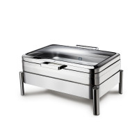 Chafer features 18/ 8 stainless steel construction with a glass lid so guests can easily view the contents without opening.