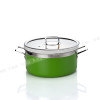 Premium three-layer stainless steel hot pot with a ceramic inner lining and a stylish green exterior, designed for elegant presentation.